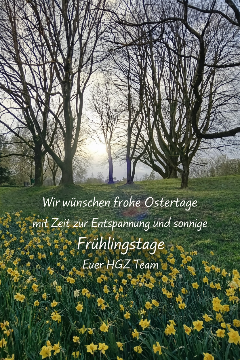Wir wünschen frohe Ostertage mit Zeit zur Entspannung und sonnige Frühlingstage. Euer HGZ Team